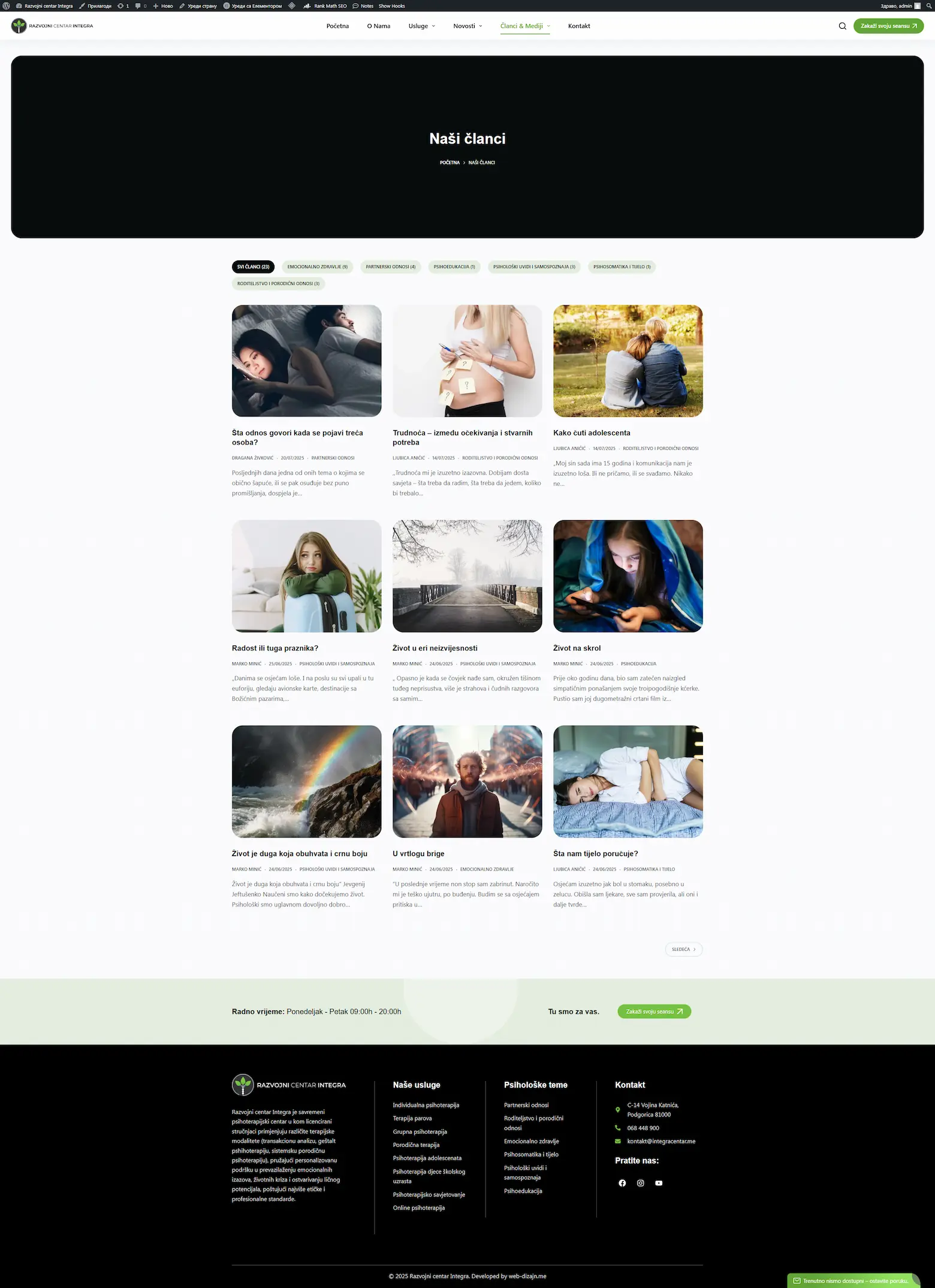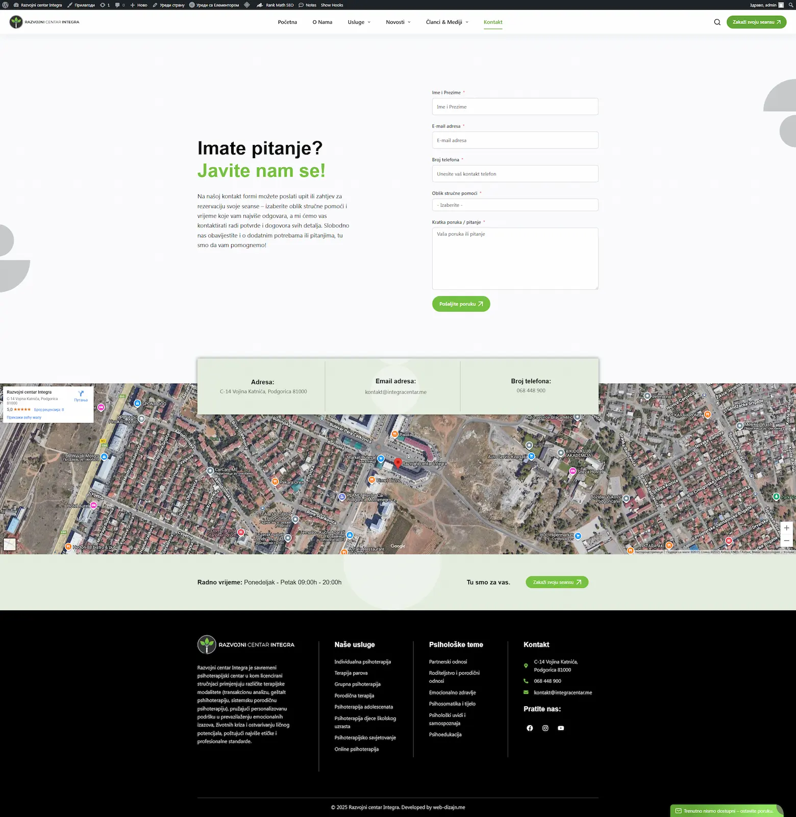 Razvojni centar Integra je dobio modernu, pouzdanu i profesionalnu online platformu koja jasno komunicira njihove vrijednosti, olakšava pristup psihoterapijskoj podršci i jača digitalnu vidljivost centra. Novi sajt doprinosi izgradnji povjerenja i stvaranju sigurnog prostora za sve koji su u potrazi za ličnim rastom i promjenom.